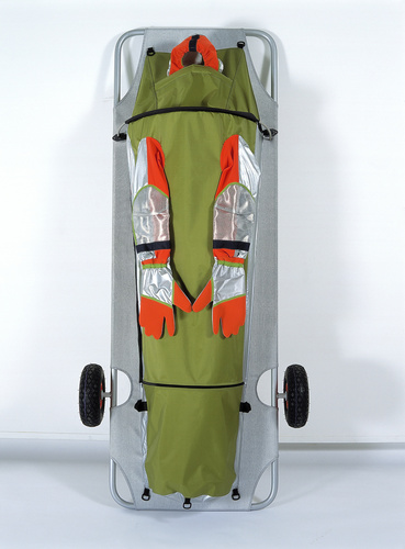 Depuis 2002, Lucy Orta expérimente avec des articles de surplus de l'armée de la Croix-Rouge, cousant et incorporant des bivouacs et des combinaisons sur les toiles de lin de lits de camp et de civières de premiers secours. Le cadre rigide des lits sert de dispositif d'encadrement et leur fonction première prend un nouveau sens, le corps étant rendu plus visible par les ajouts de tissu. Les personnages semblent être soutenus par le cadre des lits, ou soutenir les autres - "Life Guard", le corps est aussi une structure fragile qui a besoin de chaleur et de protection.