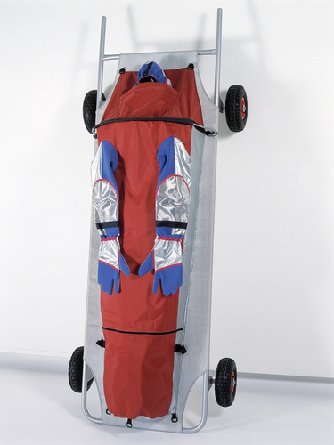 Steel structure, wheels, Kevlar, aluminium coated polyamide, PVC, various fabrics, zippers, aluminium armature